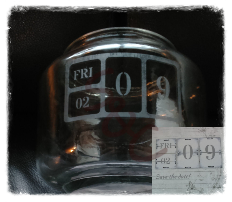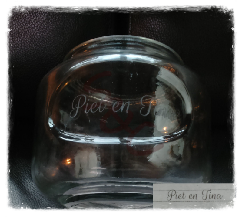 Zo maakte ik een glazen pot aan de hand van de trouwkaart. Hierbij heb ik het passende lettertype kunnen vinden en heb op deze manier een zeer persoonlijk cadeau gemaakt voor het bruidspaar.