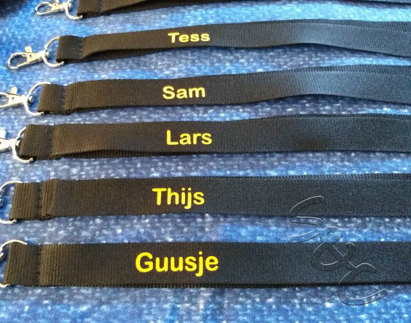 Voor een afscheid op school hebben alle kinderen in de klas een sleutelkoord met hun eigen naam gekregen.